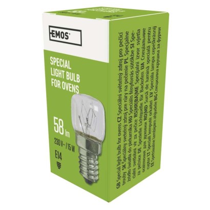 energetická třída: neuvádí se|energetická třída (od 1.9.2021): E|napětí: 230 V|patice (uchycení žárovky): E14|příkon: 15 W|prodejní obal: 1 ks, krabice|produkt: žárovka do pečících trub|rozměr: 23 × 45 mm|světelný tok: 58 lm|teplota: 300 °C|typ: žárovka do pečící trouby|záruční doba: 2 roky