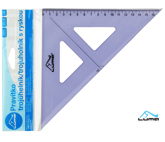 - PVC materiál- vhodné pro školáky, kanceláře i do domácnosti- délka 16cm- úhel 90° s ryskou- voděodolný potisk- ryska není tištěna (nesmaže se)
