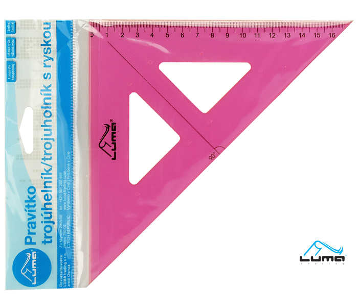 - PVC materiál- vhodné pro školáky, kanceláře i do domácnosti- délka 16cm- úhel 90° s ryskou- voděodolný potisk- ryska není tištěna (nesmaže se)