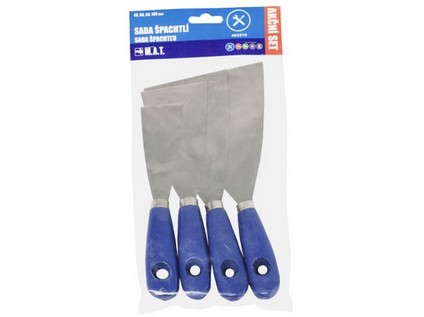 4 dílná sad (40, 60, 80, 100 mm) nerez Sada klínových špachtlí, které se užívají pro roztírání tmelících hmot či k odstraňování staré malby a nátěrů.