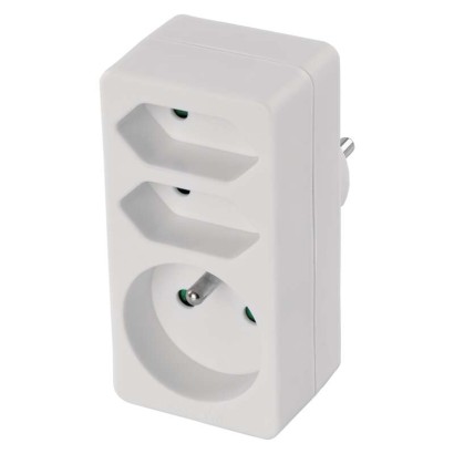 barva: bílá|dálkový ovladač: ne|dětské clonky: ano|dosah signálu: neuvádí se|easy learning: ne|krytí: IP20|materiál: plast|max. zátěž: 2 300 W|možnost ovládání: ne|napětí/proud: 250 V~/10 A max.|počet pólů: neuvádí se|počet zásuvek: 1× 2P + PE + 2× 2P|pozice ochranného kontaktu: neuvádí se|přenosoná frekvence: ne|prodejní obal: 1 ks, závěs|produkt: rozbočovací zásuvka 3×|typ: FRENCH|venkovní použití: ne|vypínač: ne