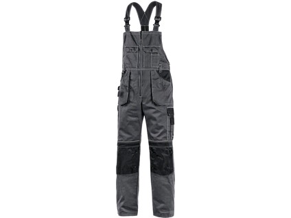 Pánské montérkové kalhoty s náprsenkou zateplené flanelem - zkrácená varianta na výšku 170-176 cm. Náprsní kapsy s klopami, pas s poutky na opasek, vzadu do gumy, přední kapsy s poutky na nářadí, multifunkční kapsy na obou stranách, kolena zesílena 6