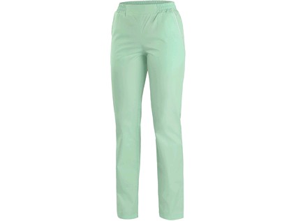 Dámské kalhoty pohodlného střihu s kontrastními bílými výpustky, pas do gumy, 2 přední kapsy.