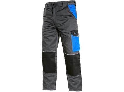 Pánské montérkové kalhoty - zkrácená varianta na výšku 170-176 cm. Kalhoty z lehkého materiálu, pas s poutky na opasek a gumou v bocích, přední klínové kapsy, boční kapsa s klopou, kapsa na skládací/svinovací metr, zdvojená kolena, zadní jednoduchá k