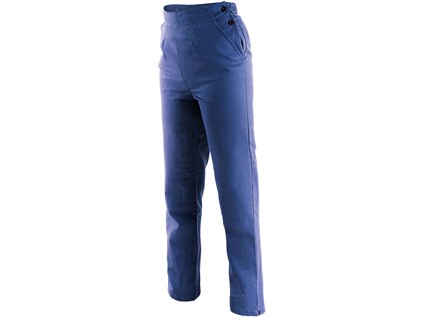 Dámské kalhoty do pasu, pevný pas, boční zapínání.