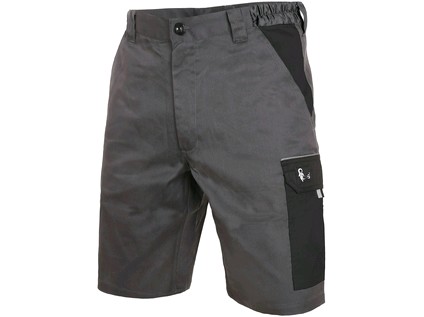 Pánské montérkové kraťasy, pas s poutky na opasek, přední klínové kapsy, boční kapsa s klopou, kapsa na skládací/ svinovací metr, zadní jednoduchá kapsa na pravé straně.
