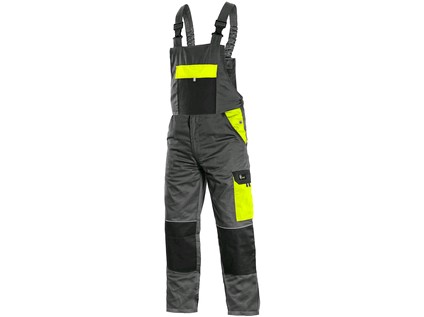 Pánské montérkové kalhoty s náprsenkou, z lehkého materiálu, náprsní kapsa s klopou, přední klínové kapsy, boční kapsa s klopou, kapsa na skládací/svinovací metr, zdvojená kolena, zadní jednoduchá kapsa, šle vzadu na gumu. Díky odlehčené gramáži vhod