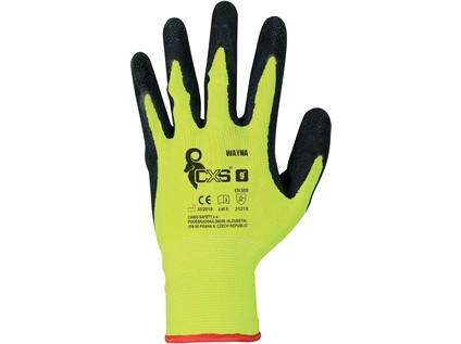 Bezešvé rukavice z měkčeného úpletu, dlaň a prsty povrstveny latexem s pískovou úpravou.