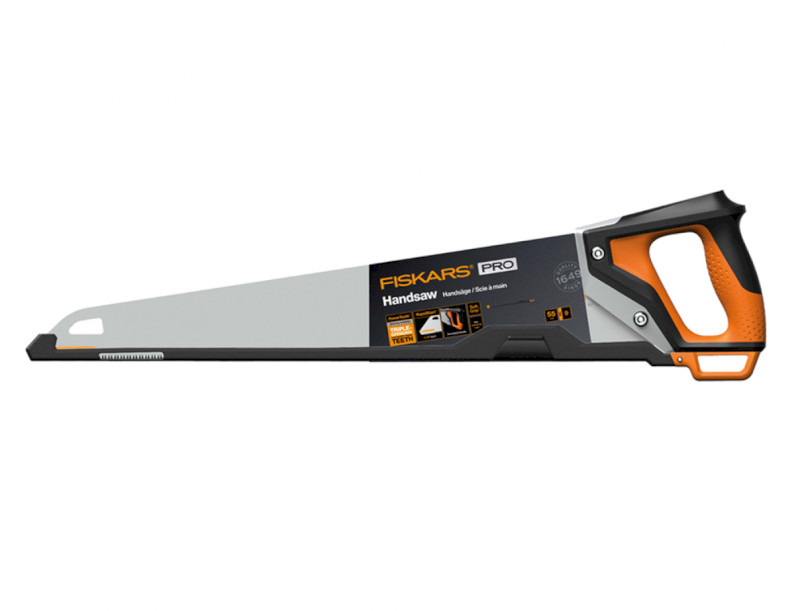 Univerzální ruční pila je velmi kvalitní a pevná má celokovové tělo. Ergonomický design podporuje různé úchopy a umožňuje práci pod různými úhly. Vhodná k řezání všech druhů dřeva, laminátu, PVC i dalších materiálů. Má ostrou čepel s indukčně kalenými zuby a přesným trojitým broušením řeže rychleji, výkonněji a zůstává déle ostrá. Rukojeť jednoruční pily je opatřena speciálním texturovaným povrchem SoftGrip™, který neklouže v ruce, odvádí vlhkost a zabraňuje tvorbě puchýřů. Délka čepele: 550 mm, síla čepele: 0,9 mm. Hmotnost: 580 g.